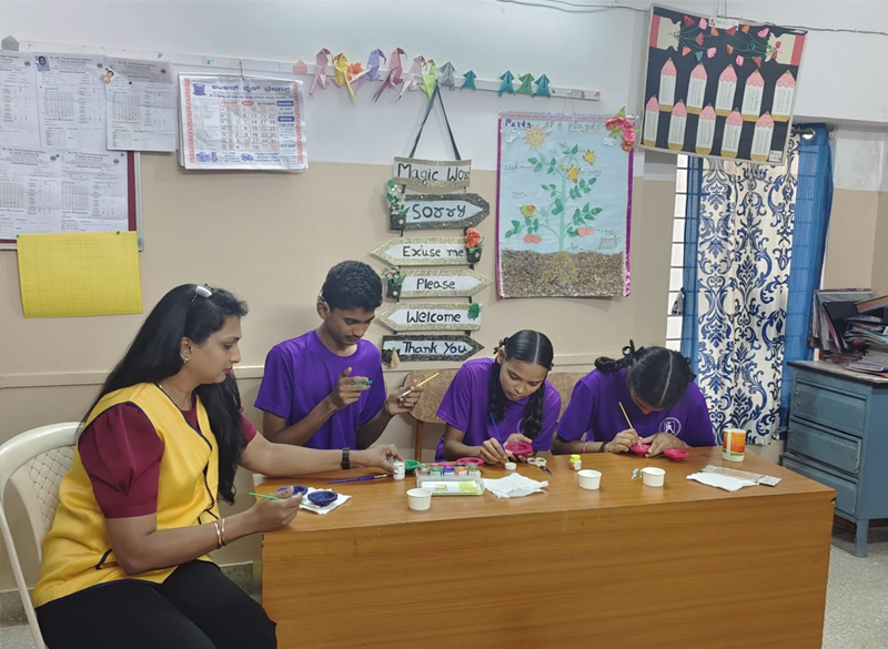 Fun activities like diya painting, silk thread bangles, quilling etc. with children at Sunaad School of Speech and Hearing